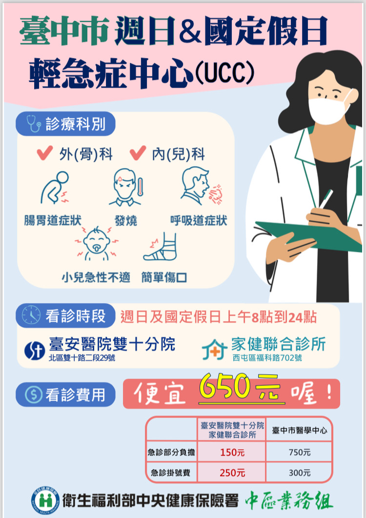✨診所假日沒開診,一定要去大醫院掛急診嗎? 現在可以選擇到UCC,省錢又迅速!